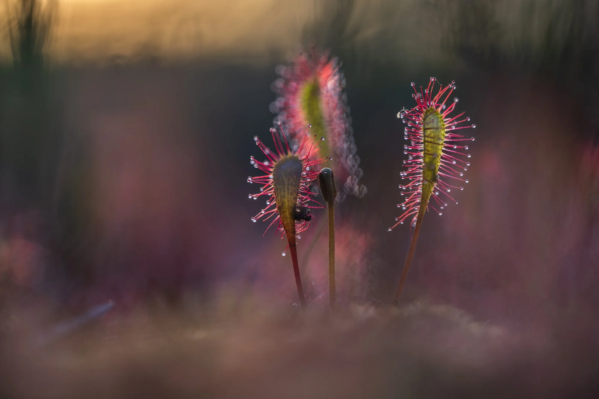 Sydänkesän päivä kääntyy illaksi, ja aurinko paistaa matalalta horisontin yläpuolella. Kaunis ja pehmeä iltavalo saa sadat pitkälehtikihokit loistamaan kauniina keskikesäisellä suolla. Kihokit vaanivat hyönteisiä ja houkuttelevat niitä pienillä nestetipoilla, jotka tuoksuvat voimakkaalta ja ovat monille hyönteisille vastustamattomia.